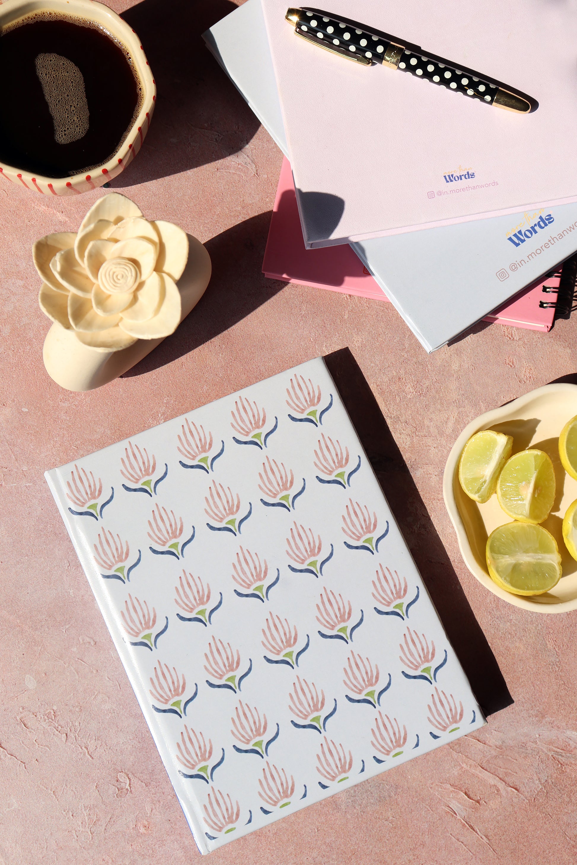 Say hello to your new desk buddy! This light blue beauty is covered in charming tulips to give you that fresh spring energy all year long. For notes, poetry or your next crush's name written a few too many times.