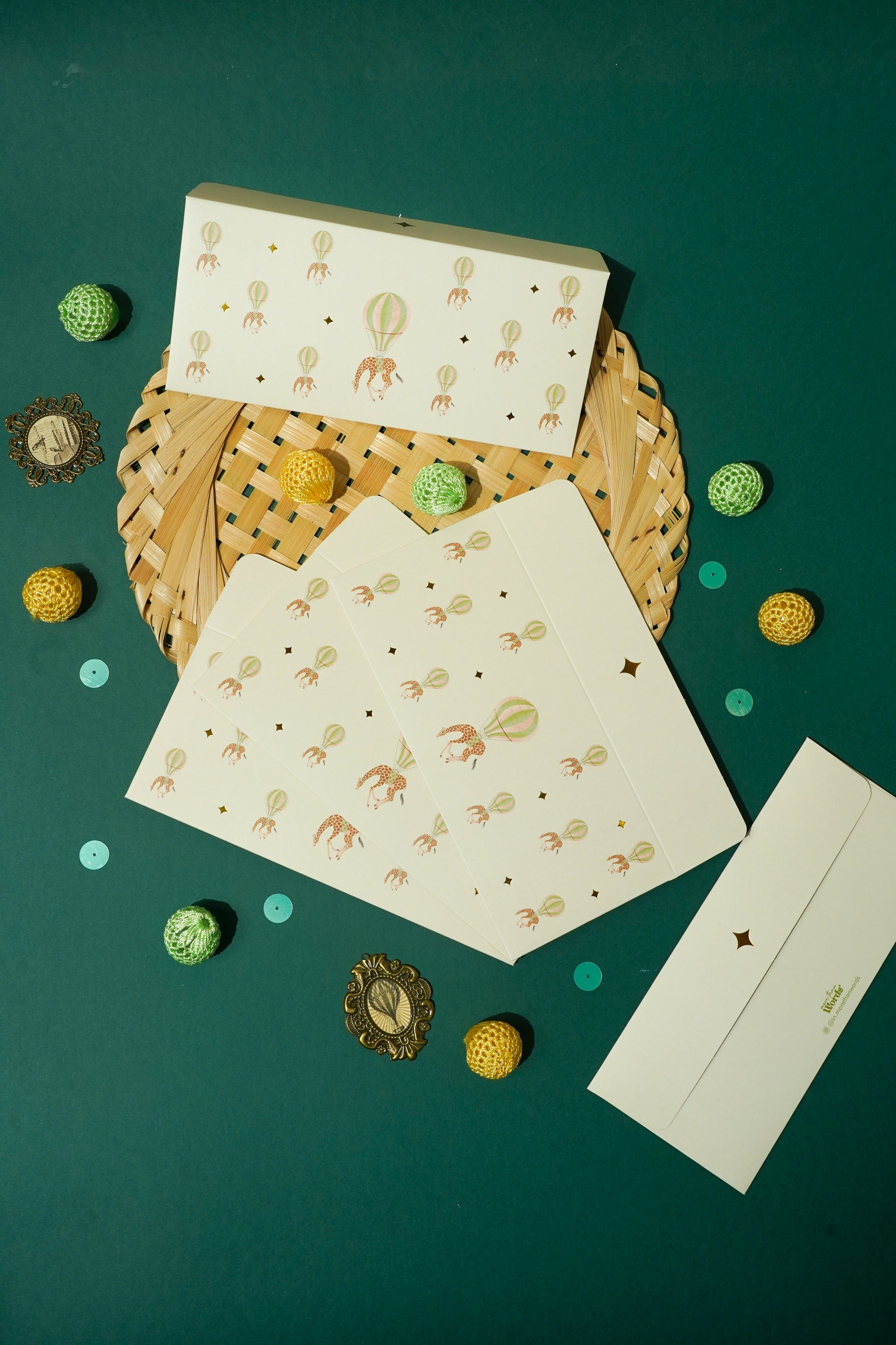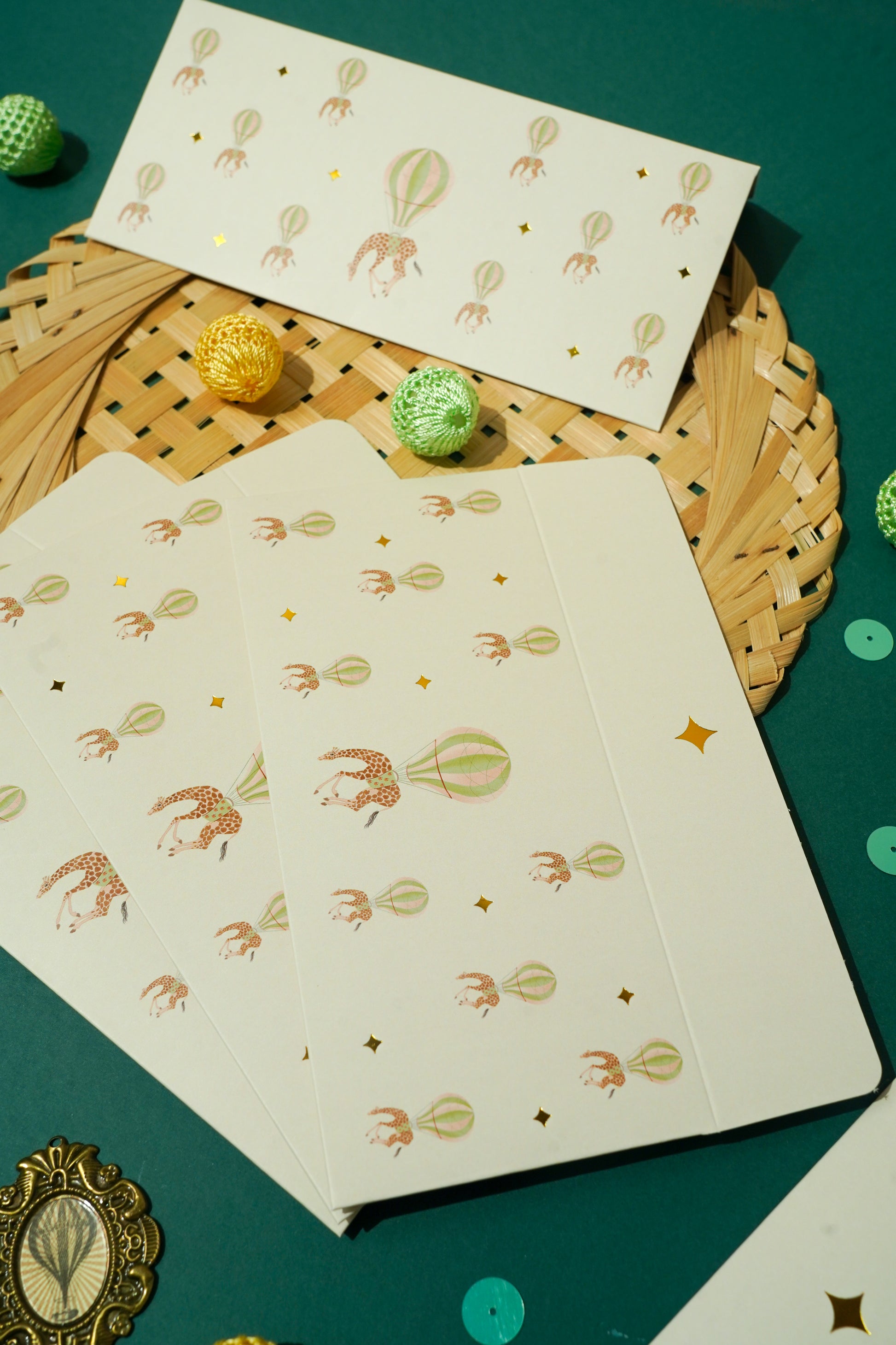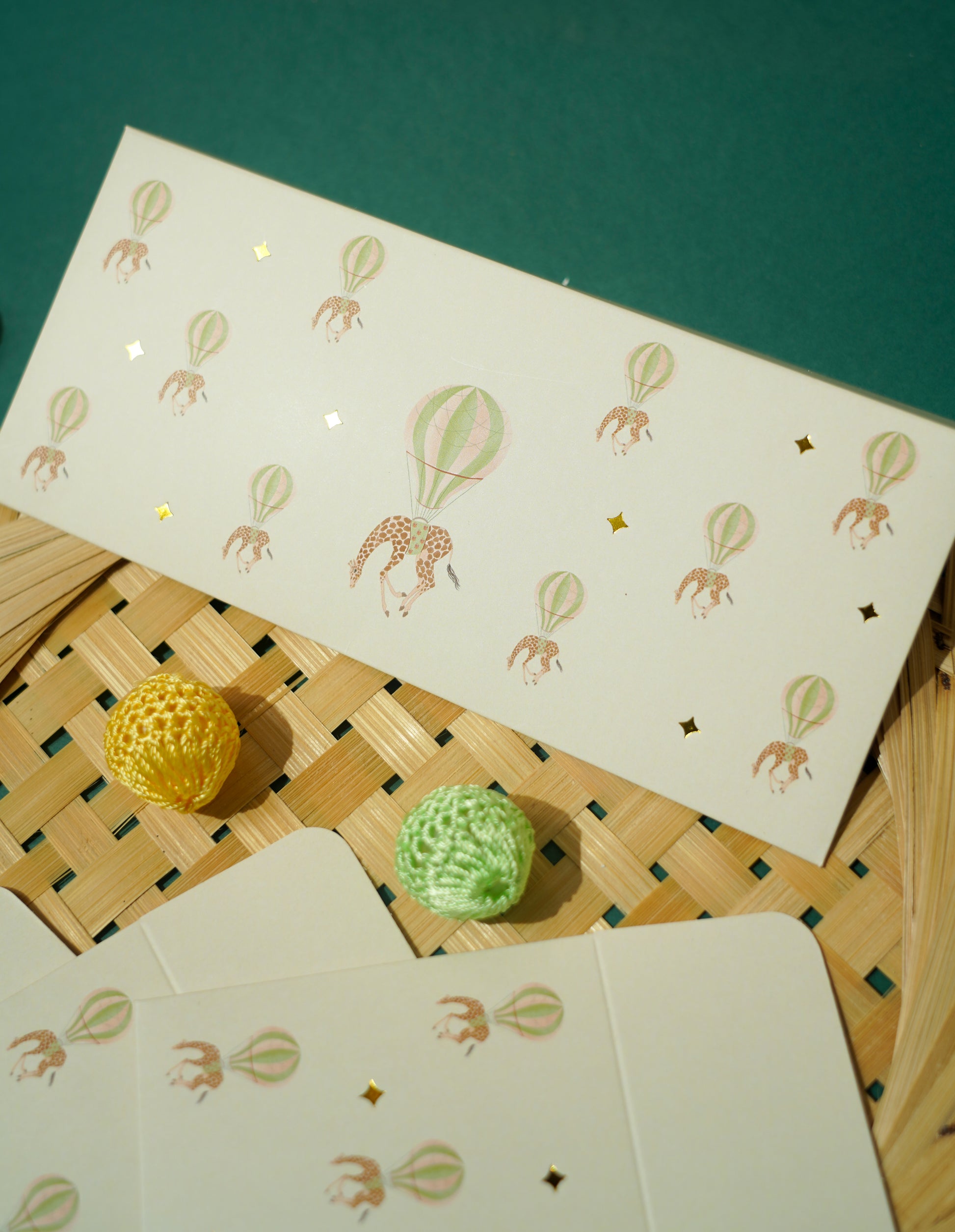 A whimsical world where giraffes float with hot air balloons- this envelope is pure joy in paper. Perfect for birthdays, baby showers or just making someone smile. Because fun never goes out of style.